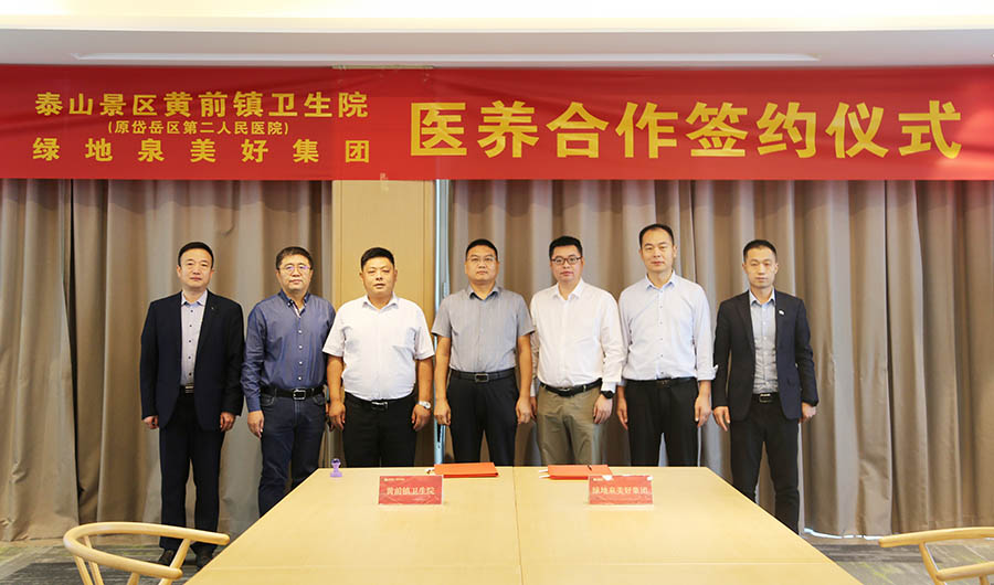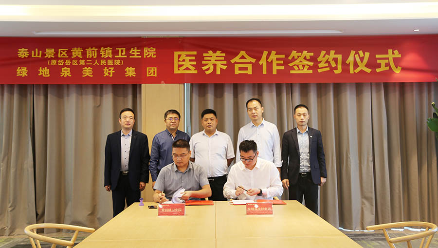 泰山景区黄前镇卫生院党支部书记、院长江焕平,副院长张庆亮,绿地泉美好生活服务集团总经理助理魏涛、蒋传宝,泰安城市公司总经理助理王永斌,绿地幸福家综合服务公司总经理助理张庆欣,绿地溪山境美好生活服务中心执行总监颜军等相关人员出席签约仪式。
