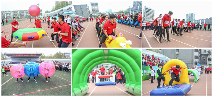 紧接着5个妙趣横生,考验体力智力和团队协作的趣味项目众星捧月、旱地龙舟、协力竞走、激情碰撞、勇攀高峰接连开赛。不同于跑道上争分夺秒的紧张氛围,有趣的项目一环接一环,运动场上洋溢着更多的欢声笑语。