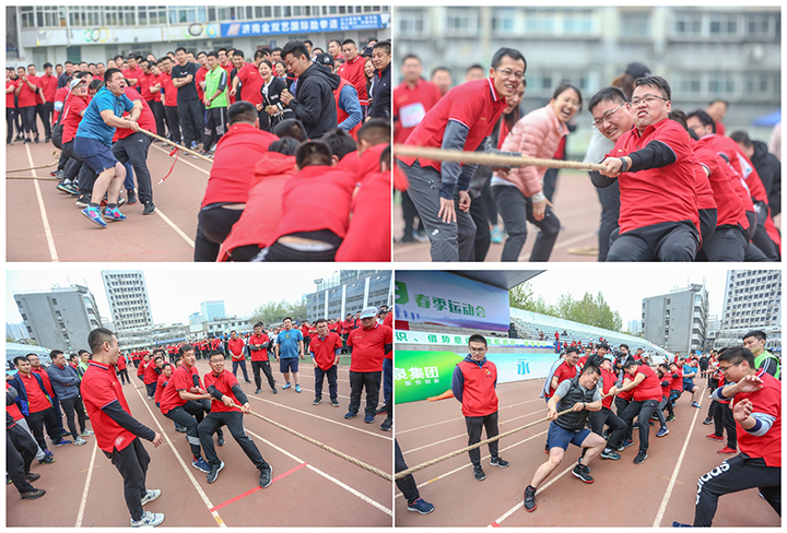 拔河将这一天比赛推向了最高潮,每支代表队都派出最强比赛阵容,当哨声响起,每一位参赛的队员都紧握长绳,卯足了劲向后拉,没有上场的员工就在旁边助阵呐喊,一时间,号子声、呐喊声,此起彼伏,充满了整个体育场。