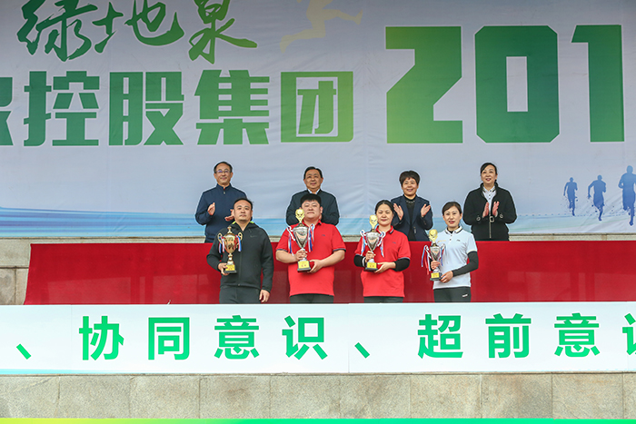 随着南部区域公司获得拔河比赛冠军的欢呼声,一天紧张的比赛到此结束。主持人宣布各比赛项目获奖的个人/单位,并由集团领导为他们进行颁奖。经过一天各项比赛的积分,最终泉景建设公司、青岛城市公司、物业服务公司三支参赛队分别以109、96、79的团队总分获得集体奖的冠、亚、季军。