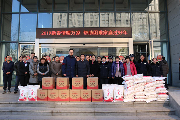 1月17日下午,2019年新春佳节来临之际,根据济南慈善总会统一部署,山东绿地泉控股集团开展“情暖万家——帮助困难家庭过好年”活动。集团工会主席、慈善工作站站长于洪星为集团下属产业公司20户困难职工家庭发放了救助物品。