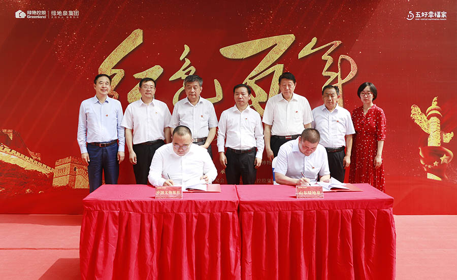 为推进红色资源共享,激发企业创新活力,为广大业主打造美好生活,活动现场,李晨和曹阳分别代表中国文物报社和山东绿地泉控股集团签订合作协议,以期更好发挥双方优势,实现强强联合。