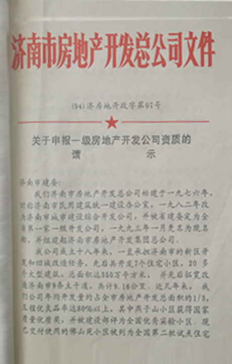 1994年8月4日,国家建设部授予公司一级房地产开发企业资质。