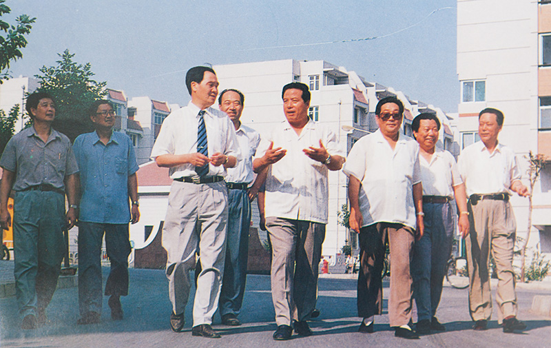 1991年7月,米兆升(前排左一,1990年12月26日起任公司总经理、党委书记)陪同侯捷(时任建设部部长)参观燕子山小区。